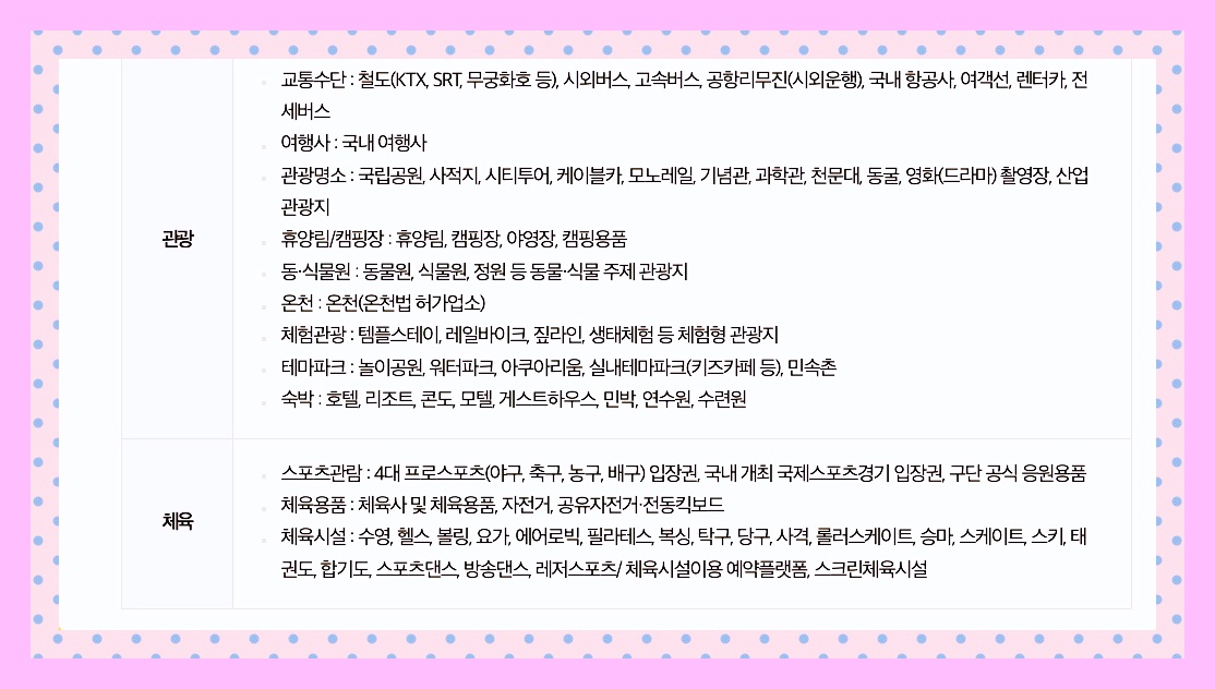 문화누리카드를 활용하면, 교통수단을 포함한 다양한 여행 관련 서비스에서의 사용이 가능해집니다. 이 카드로 관광지, 식물원, 동물원, 지역의 다양한 축제뿐만 아니라 스포츠 이벤트 관람이나 기념품 구입에도 이용할 수 있습니다. 카드 사용 가능한 곳은 온라인과 오프라인 모두에 걸쳐 있으니, 사용처 확인은 필수입니다.